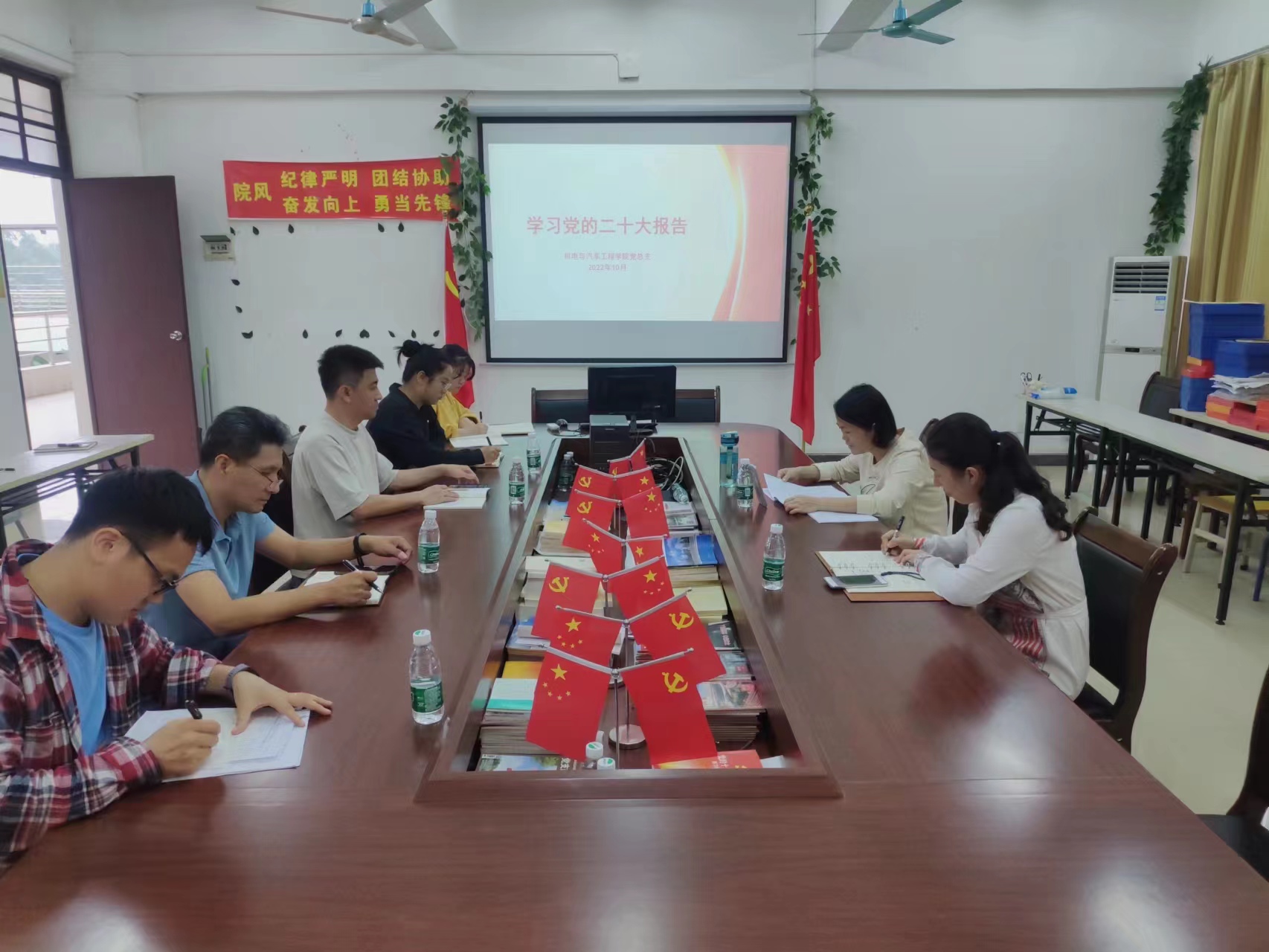 10月24日,皇冠welcome体育登录入口党总支召开线上线下专题会议传达学习党的二十大精神 ,深刻领悟党的二十大精神,研究学习贯彻落实措施,学院全体党员参加,学院党总支书记黄邦姬领学党的二十大精髓,各个党员纷纷做学习分享和发言。