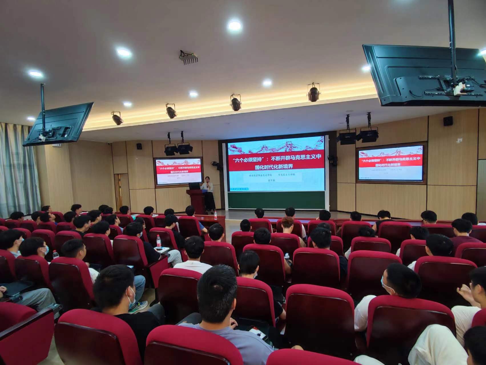 11月24日上午,皇冠welcome体育登录入口在1-421组织召开了学习宣传贯彻党的二十大精神宣讲报告会,邀请马克思主义学院侯军英副教授在会上做了题为《“六个必须坚持”:不断开辟马克思主义中国化时代化新境界》的专题报告。皇冠welcome体育登录入口部分教师,学生党支部全体在校党员、发展对象、入党积极分子和21级、22级部分同学参加了报告会,报告会由院党总支书记黄邦姬主持。