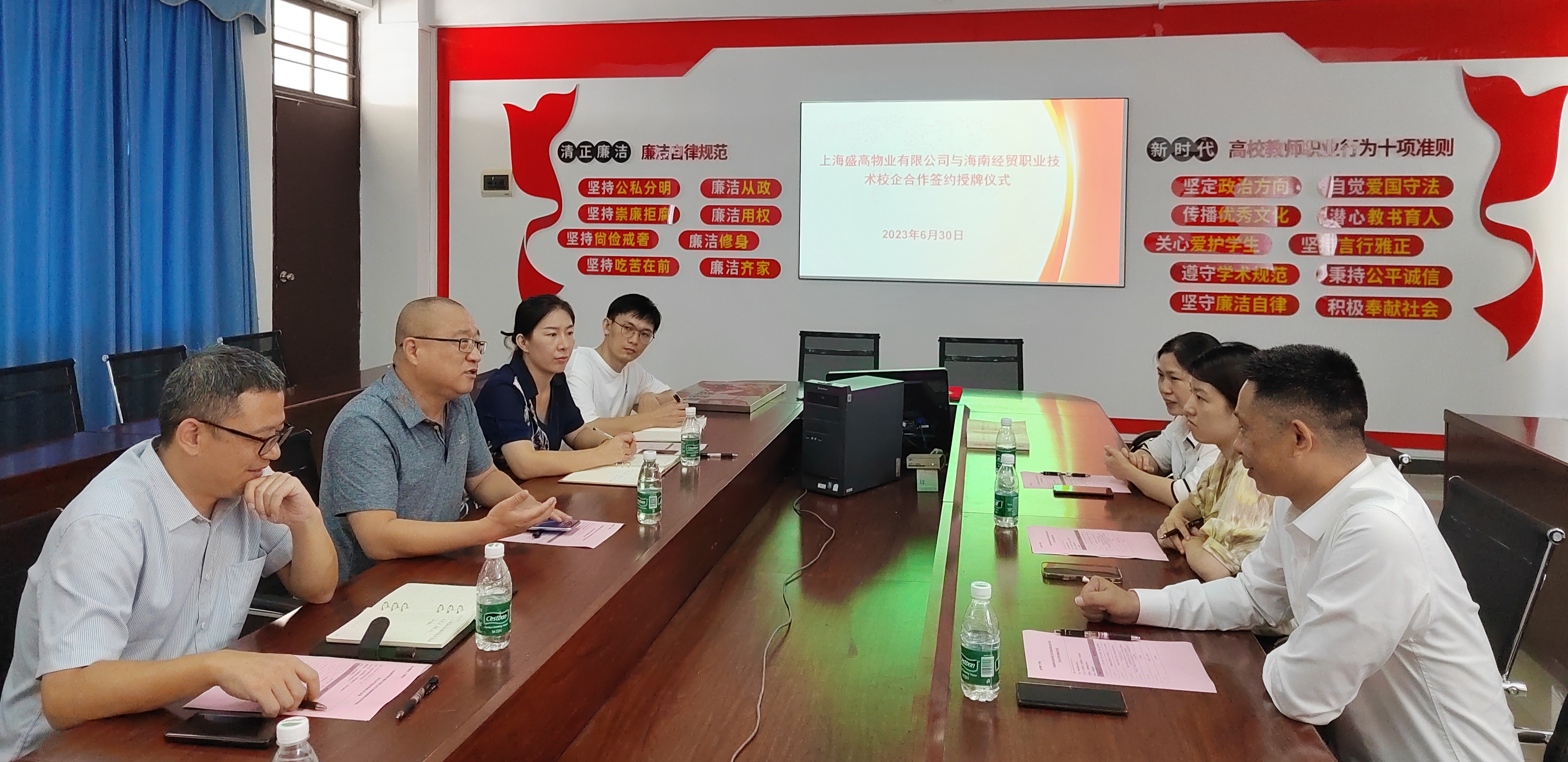 2023年6月30日,皇冠welcome体育登录入口与上海盛高物业服务有限公司海口分公司在2-406会议室成功举办合作签约授牌仪式,公司人力中心总监季雪、南宁中心城市总经理徐敏智、学院院长张克明、副院长白有俊、副院长马艳花及相关人员出席签约仪式。