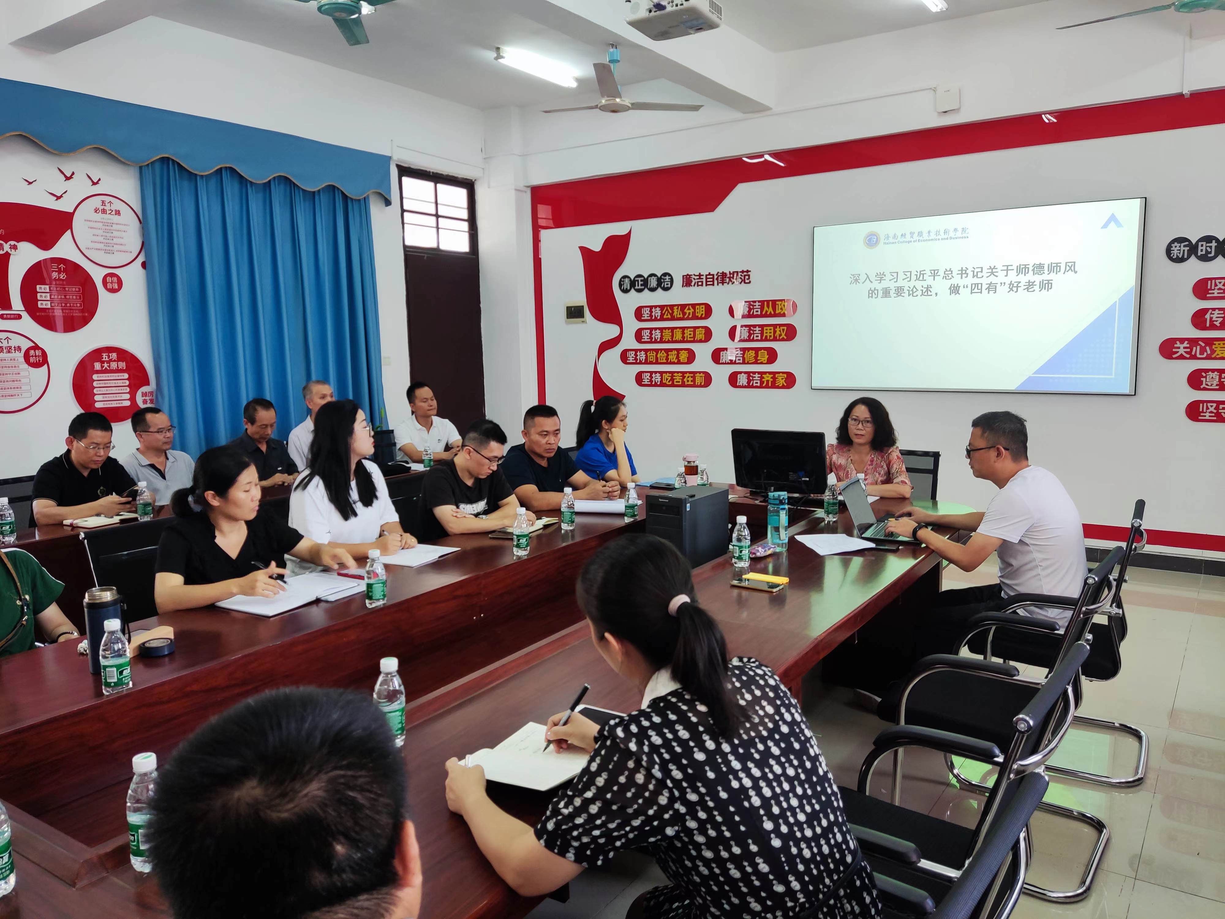 会议强调,师德师风建设刻不容缓,告诫教师以案为鉴,牢固树立底线意识,切实做到警钟长鸣,洁身自好,为人师表,时刻不忘自己的教师身份和形象。要争做有理想信念,有道德情操,有仁爱之心,有扎实学识的“四有好教师”。