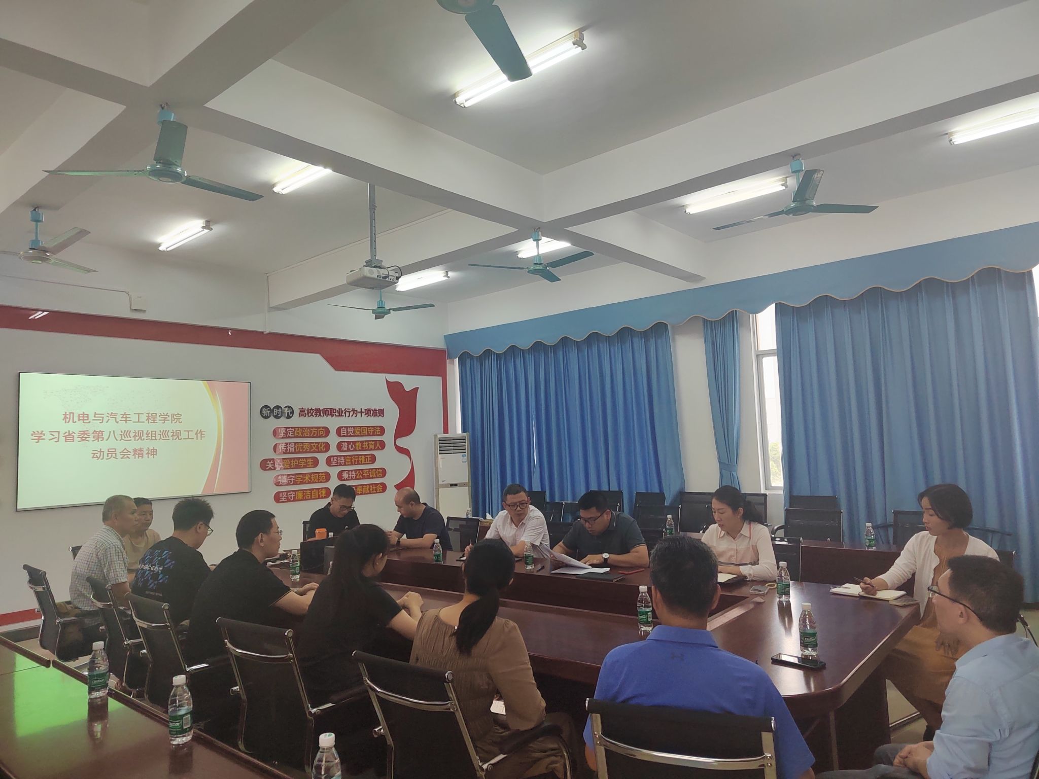 会上,冯标山指出,省委巡视工作是一项政治任务,也是一项常规工作,也是坚持党要管党、全面从严治党的根本抓手,全院教职工要充分认识到此次巡视工作的重大意义,全局上下要高度重视此次巡视,提高政治站位,统一思想认识,以高度的责任感和使命感,高质量、高标准配合省委巡视工作。他强调,学院各专业教研室、各党支部要组织党员干部、广大教师深入学习贯彻习近平总书记关于巡视工作重要论述和新修订的《中国共产党巡视工作条例》,推动全面从严治党向纵深发展,推动学院各项工作走在前、干在先,努力实现高质量发展