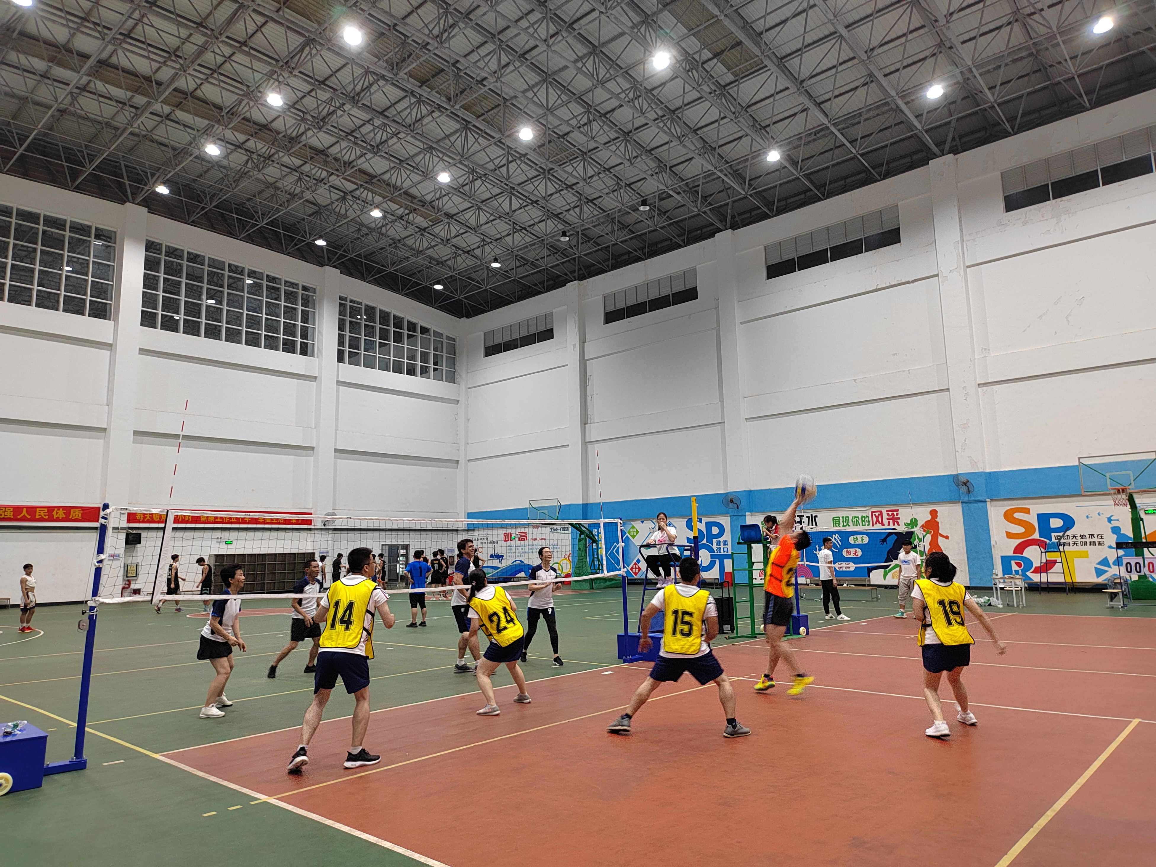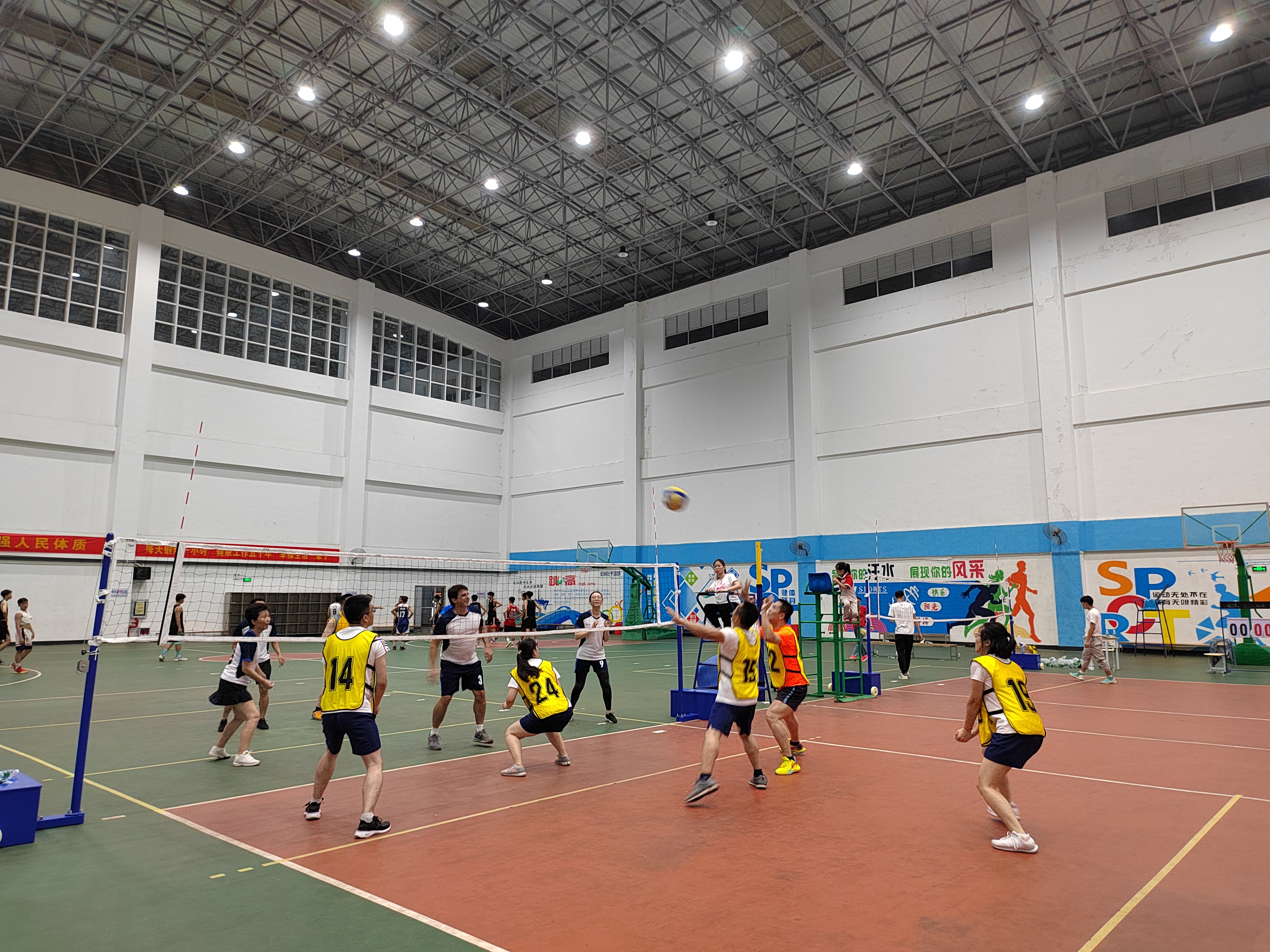 由学校工会组织的第一届气排球比赛在体育馆内火热开赛,本次比赛吸引了来自各个分工会的12支队伍,100余人报名,机电分工会积极组织二级学院教职工积极参与、共同锻炼和共同交流,并在比赛中取得佳绩。