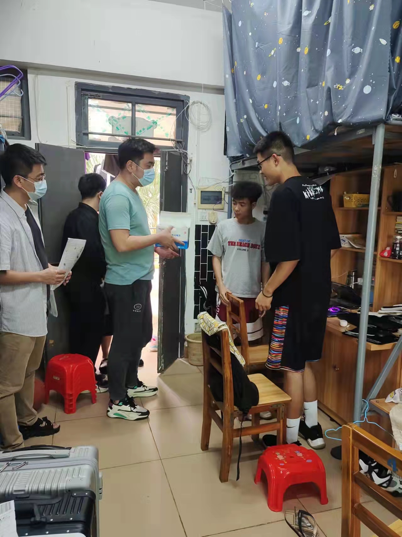 3月18日下午,在学院学工办副主任周恺老师的带领下,学工办全体老师来到了我院学生所在的学生宿舍4栋、5栋,向同学们传达学校有关疫情防控专题会议精神,解释相关防疫管理规定。周恺老师还代表学院向同学发放了消毒酒精等防疫物资,叮嘱大家提高日常防疫意识,尤其是做好快递包裹、外卖等的消毒措施,同时还提醒大家消毒酒精在使用过程中需要注意的事项,避免发生意外。