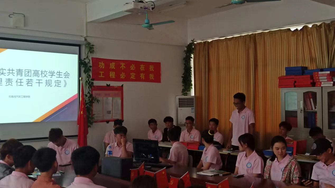 2020年11月25日,我院于2教406组织学习了学习贯彻落实《关于学联学生会工作人员改进作风服务同学的若干规定》、《关于落实共青团和学联对高校学生会(研究生会)指导管理责任的若干规定( 试行)》的文件精神。此次学习会议由我院团学青主席进行讲授。